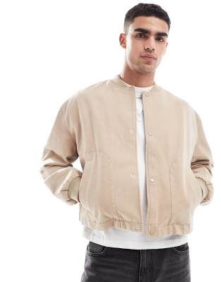 Jackets & Coats by ASOS DESIGN Mid-season layering Baseball collar Press-stud placket Side pockets Cropped length Oversized fit