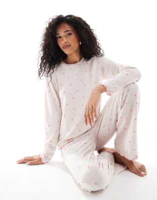 Lingerie & Nightwear by Loungeable Includes a T-shirt and trousers Heart print Relaxed-fit T-shirt Crew neck Long sleeves Wide-leg trousers Elasticated waistband