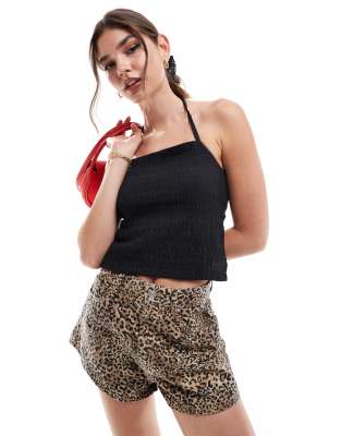 Tops by ASOS DESIGN Stay on top of it Shirred design Halterneck style Open back Tie-back fastenings Regular fit