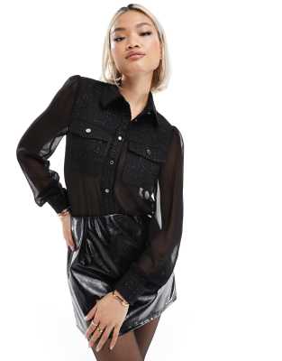 Επισκέψου το κατάστημα Asos για να δεις περισσότερες λεπτομέρειες και φωτογραφίες για το Morgan sheer gold button blouse with contrast tweed trim in black. Για αγορά του Morgan sheer gold button blouse with contrast tweed trim in black πρέπει να επισκεφτείς το κατάστημα Asos.