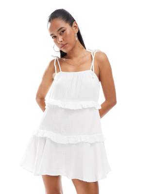 Επισκέψου το κατάστημα Asos για να δεις περισσότερες λεπτομέρειες και φωτογραφίες για το New Look tiered mini sundress in white. Για αγορά του New Look tiered mini sundress in white πρέπει να επισκεφτείς το κατάστημα Asos.