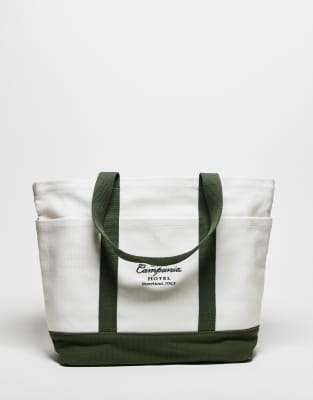 Accessories by Abercrombie & Fitch Tote style Twin handles Open top Interior compartment Contrast panel Embroidered design
