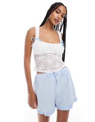 Επισκέψου το κατάστημα Asos για να δεις περισσότερες λεπτομέρειες και φωτογραφίες για το Miss Selfridge lace bow detail floral corset top in white. Για αγορά του Miss Selfridge lace bow detail floral corset top in white πρέπει να επισκεφτείς το κατάστημα Asos.