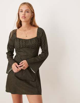 Dresses by Kiss The Sky Polka-dot print Square neck Long sleeves Zip-back fastening Regular fit