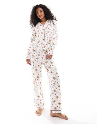 Lingerie & Nightwear by Loungeable Includes a shirt and trousers All-over print Regular-fit shirt Revere collar Button placket Long sleeves Wide-leg trousers Elasticated waistband