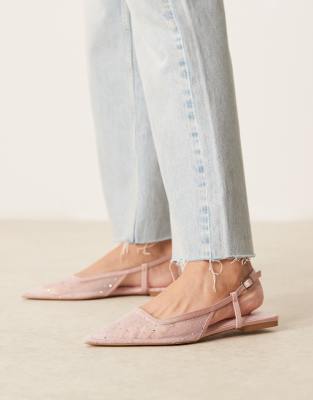 Shoes by ASOS DESIGN Diamante embellishment Pin-buckle fastening Slingback strap Pointed toe Flat sole