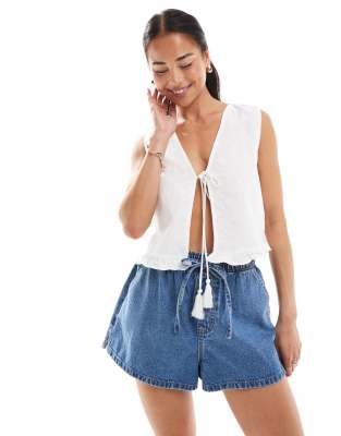 Tops by ONLY V-neck Tie front Sleeveless style Frill hem Regular fit