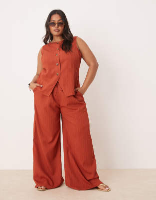 Επισκέψου το κατάστημα Asos για να δεις περισσότερες λεπτομέρειες και φωτογραφίες για το ASOS DESIGN Curve crinkle palazzo trousers co-ord in rust-Orange. Για αγορά του ASOS DESIGN Curve crinkle palazzo trousers co-ord in rust-Orange πρέπει να επισκεφτείς το κατάστημα Asos.