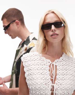Accessories by Le Specs Rectangular frames Moulded nose pads Dark-tinted lenses Tapered arms Unisex style