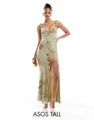 Dresses by ASOS Tall Master the dress code Sweetheart neck Elasticated straps Cup and tie details Zip-back fastening Thigh-high split Lace inserts Slim fit