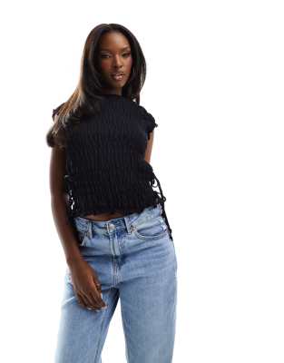 Επισκέψου το κατάστημα Asos για να δεις περισσότερες λεπτομέρειες και φωτογραφίες για το ASOS DESIGN textured short sleeve top with tie sides in black. Για αγορά του ASOS DESIGN textured short sleeve top with tie sides in black πρέπει να επισκεφτείς το κατάστημα Asos.