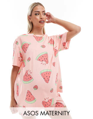 Επισκέψου το κατάστημα Asos για να δεις περισσότερες λεπτομέρειες και φωτογραφίες για το ASOS DESIGN Maternity watermelon oversized tee & short pyjama set in pink. Για αγορά του ASOS DESIGN Maternity watermelon oversized tee & short pyjama set in pink πρέπει να επισκεφτείς το κατάστημα Asos.