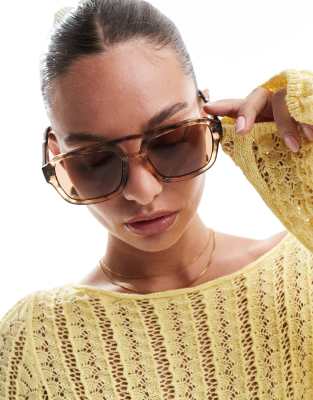 Accessories by A.Kjaerbede Tortoiseshell design Aviator frames Brow bar detail Moulded nose pads Light-tinted lenses Tapered arms