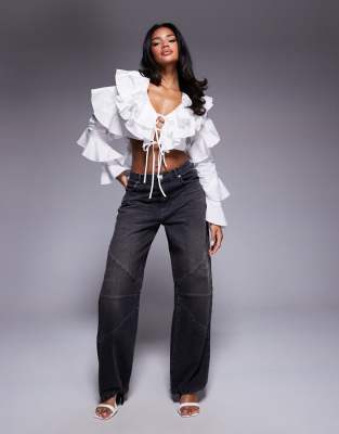 Jeans by ASOS LUXE Barrel leg Low rise Belt loops Concealed fly Four pockets Seam details Drawstring cuffs