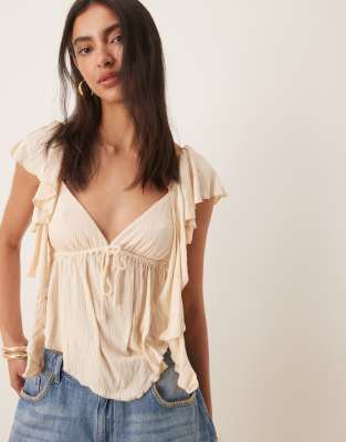 Επισκέψου το κατάστημα Asos για να δεις περισσότερες λεπτομέρειες και φωτογραφίες για το ASOS DESIGN crinkle flutter sleeve open back top in cream-White. Για αγορά του ASOS DESIGN crinkle flutter sleeve open back top in cream-White πρέπει να επισκεφτείς το κατάστημα Asos.