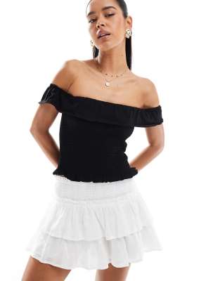 Tops by Stradivarius Off-shoulder style Frill trim Stretch shirred main Cropped length Regular fit