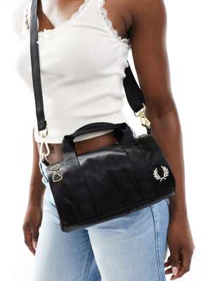 Accessories by Fred Perry Fred Perry is donating to the Amy Winehouse Foundation for this collection Inspired by Amy’s original designs for the brand Barrel shape Twin handles Adjustable detachable strap Can be used as a clutch or worn across the body Logo embroidery Zip fastening