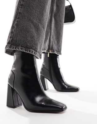 Shoes by ASOS DESIGN Good things come in pairs Pull-on style Zip-side fastening Square toe High block heel