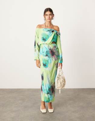Dresses by ASOS EDITION For your weekend mood board Floral design Off-shoulder style Long sleeves Cut-out detail Zip-side fastening Side split Regular fit