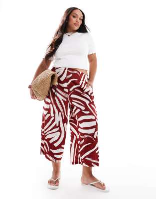 Trousers & Leggings by New Look Plus Abstract print High rise Stretch-back waistband Cropped length Wide leg