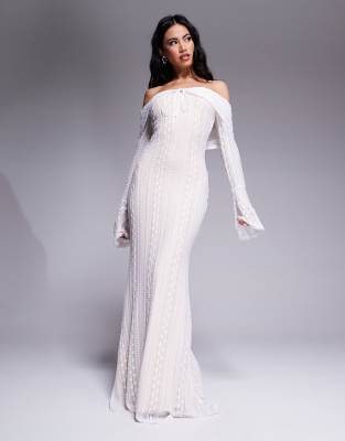 Επισκέψου το κατάστημα Asos για να δεις περισσότερες λεπτομέρειες και φωτογραφίες για το Aria Cove pointelle knit bardot flare sleeve maxi dress in white. Για αγορά του Aria Cove pointelle knit bardot flare sleeve maxi dress in white πρέπει να επισκεφτείς το κατάστημα Asos.