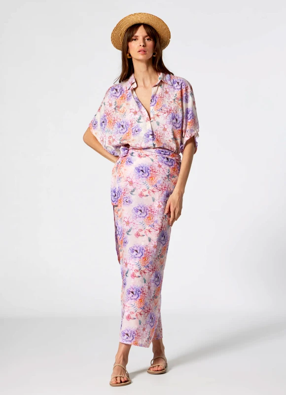 This unique linen shirt with collar and buttons all the way down details, are an absolute must-have for your summer time! This one is decorated in our signature romantic inspired print in elegant flowers hues and is the perfect throw-on for blissful beach moments! Combine it with our matching swimsuits and…dress to impress!