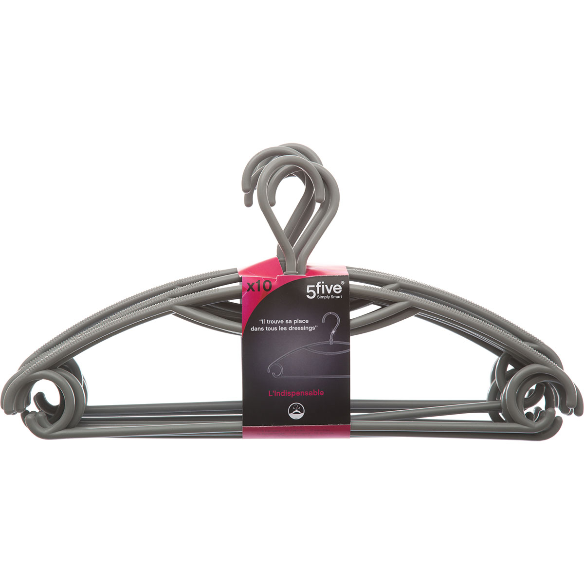 Κρεμάστρες ρούχων 10 τεμάχια, σε γκρι χρώμα κατασκευασμένες από πλαστικό υλικό. Έχουν λεπτό σχεδιασμό για εξοικονόμηση χώρου στην ντουλάπα. Διαθέτει γατζάκια για να μπορείτε να κρεμάσετε φορέματα ή μπλουζάκια με ραντάκια και ανάγλυφη υφή στα πλαινά για να μην γλιστράνε τα πουκάμισα κλπ.