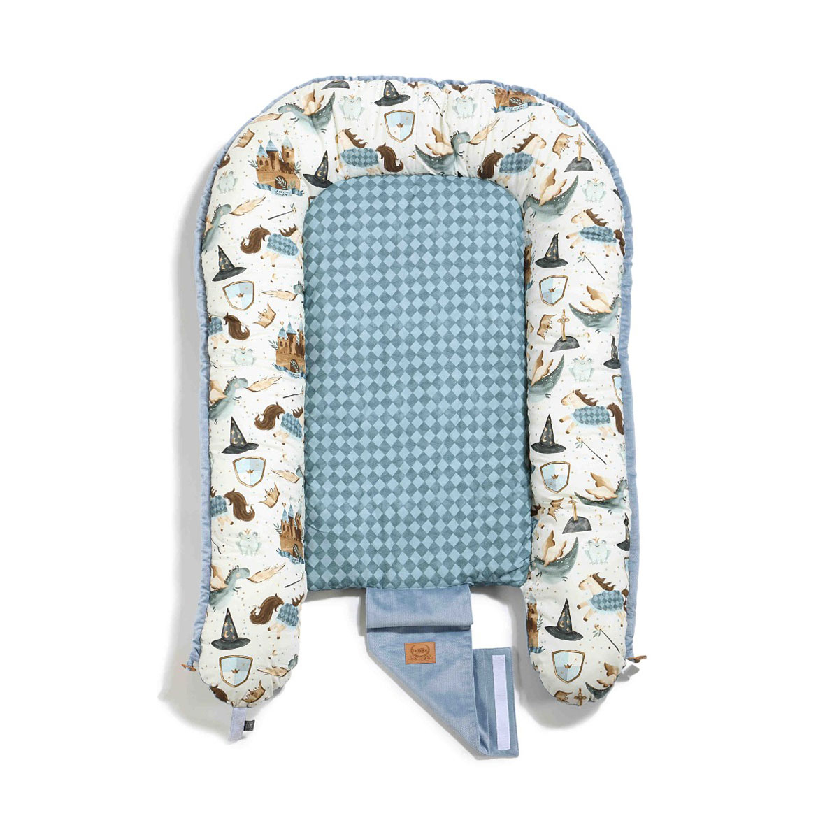 Φωλιά ύπνου Kokon της εταιρείας La Millou. Βοηθάει το μωρό σας να χαλαρώσει καθώς το αγκαλιάζει και το κάνει να νιώθει ασφαλές και προστατευμένο. Προστατεύει από τα χτυπήματα, τις απότομες κινήσεις αλλά και όταν γυρνάει πλευρό. Μπορείτε να την έχετε πάντα και παντού μαζί σας για να ξεκουραστεί το μωρό σας νιώθοντας ασφάλεια. Είναι κατάλληλη από την πρώτη ημέρα της γέννησης και για ολόκληρο τον πρώτο χρόνο. Διαθέτει κορδόνια, καλυμμένα από βελουτέ ύφασμα που δεν μπλέκονται στα πόδια του μωρού και προσαρμόζουν το μέγεθος της φωλιάς. Τοποθετούνται εύκολα μέσα στην ειδική περιμετρική θήκη για να μην εξέχουν προσφέροντας επιπλέον ασφάλεια. Έχει βελουτέ χερούλια για να την μεταφέρετε εύκολα (δεν μπορεί να χρησιμοποιηθεί για να μεταφέρετε το μωρό).Το εσωτερικό της ύφασμα είναι από 100% βαμβάκι σε γαλάζιο χρώμα με μοντέρνο σχέδιο. Το εξωτερικό της ύφασμα είναι elegant-Velvet σε γαλάζιο χρώμα. Το εσωτερικό στρώμα είναι φτιαγμένο από χνούδι σιλικόνης. Πλένεται στο πλυντήριο χωρίς να χρειάζεται να αφαιρεθεί το στρώμα, καθώς το εσωτερικό γέμισμα είναι ραμμένο με το εξωτερικό βαμβακερό ύφασμα. Περιλαμβάνεται η τσάντα μεταφοράς. Τα υφάσματα και η εσωτερική γέμιση έχουν πιστοποίηση Oeko – Tex Standard 100. Συνιστάται η επίβλεψη του γονέα τουλάχιστον μέχρι την ηλικία των 12 μηνών. Όλα τα προϊόντα της εταιρείας La Millou είναι χειροποίητα.