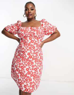 Dresses by Glamorous Curve Daytime chic Floral design Square neck Puff sleeves Tie back Regular fit