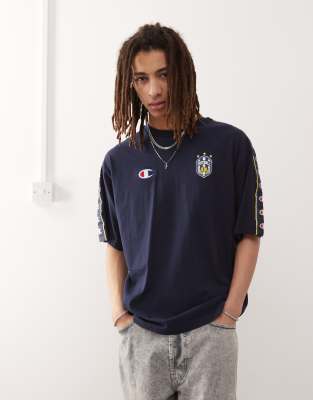 Επισκέψου το κατάστημα Asos για να δεις περισσότερες λεπτομέρειες και φωτογραφίες για το Champion football t-shirt in navy. Για αγορά του Champion football t-shirt in navy πρέπει να επισκεφτείς το κατάστημα Asos.