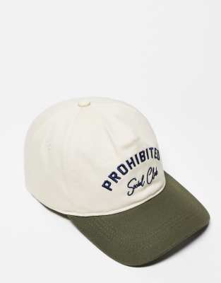 Accessories by Prohibited Panelled crown Eyelets for ventilation Logo embroidery Contrast curved peak Adjustable buckle strap
