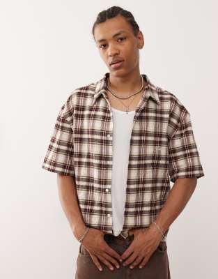 Shirts by Prohibited Check design Spread collar Button placket Chest pocket Logo embroidery Boxy fit
