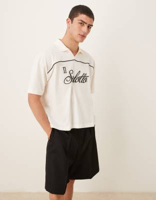 Επισκέψου το κατάστημα Asos για να δεις περισσότερες λεπτομέρειες και φωτογραφίες για το ASOS DESIGN boxy oversized polo with text graphic in cream-White. Για αγορά του ASOS DESIGN boxy oversized polo with text graphic in cream-White πρέπει να επισκεφτείς το κατάστημα Asos.