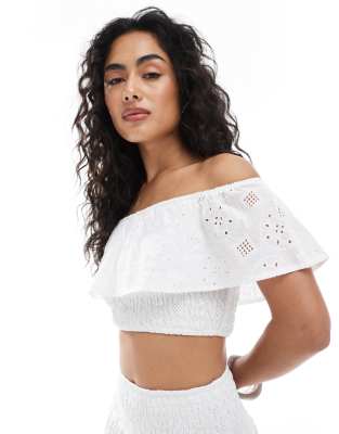 Επισκέψου το κατάστημα Asos για να δεις περισσότερες λεπτομέρειες και φωτογραφίες για το Esmee Exclusive bardot broderie beach crop top in white. Για αγορά του Esmee Exclusive bardot broderie beach crop top in white πρέπει να επισκεφτείς το κατάστημα Asos.
