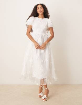 Dresses by sister jane Round neck Puff sleeves Floral details Button-keyhole back Regular fit