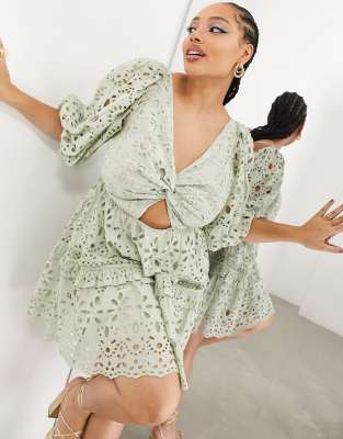 Επισκέψου το κατάστημα Asos για να δεις περισσότερες λεπτομέρειες και φωτογραφίες για το ASOS EDITION Curve broderie twist front mini dress with puff sleeve in sage green. Για αγορά του ASOS EDITION Curve broderie twist front mini dress with puff sleeve in sage green πρέπει να επισκεφτείς το κατάστημα Asos.
