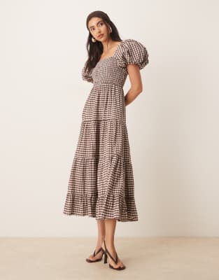Dresses by sister jane Gingham design Square neck Puff sleeves Shirred stretch bodice Tiered skirt Regular fit