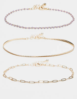 Επισκέψου το κατάστημα Asos για να δεις περισσότερες λεπτομέρειες και φωτογραφίες για το ASOS DESIGN pack of 3 anklets with purple beads and chain in gold tone. Για αγορά του ASOS DESIGN pack of 3 anklets with purple beads and chain in gold tone πρέπει να επισκεφτείς το κατάστημα Asos.