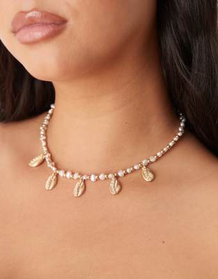 Accessories by ASOS Curve Faux-pearl chain Bead details Shell charms Adjustable length Lobster clasp