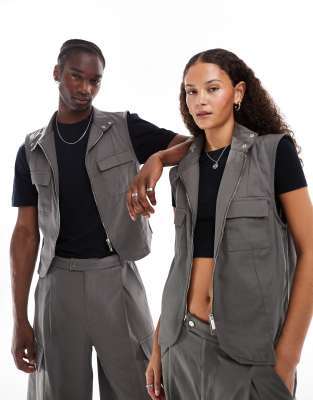 Coats & Jackets by Reclaimed Vintage Top-half options High collar Zip fastening Sleeveless style Chest pockets