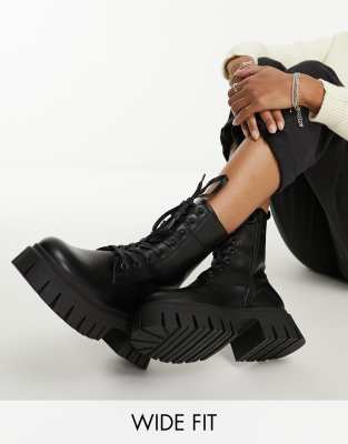 Shoes by ASOS DESIGN Wide Fit Time for a reboot Pull tab for easy entry Zip-side fastening Lace-up front Round toe Chunky sole Wide fit