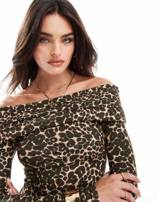 Tops by Cotton:On For your 'jeans and a nice top' dress code Animal print Bardot neck Long sleeves Slim fit