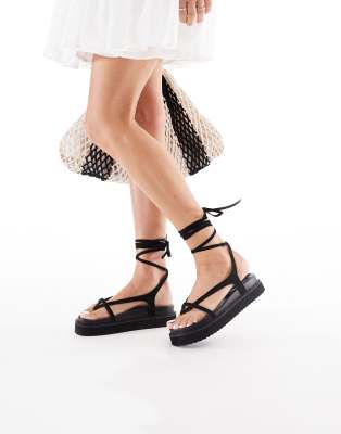 Shoes by London Rebel Wide Fit Strappy design Tie-leg fastening Toe post Flatform sole Wide fit