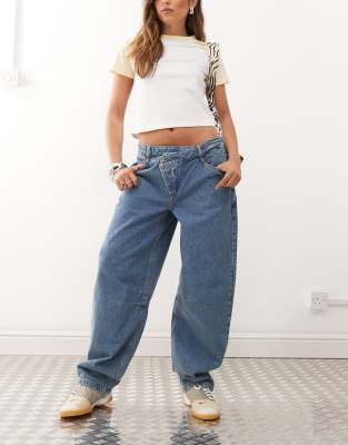 Jeans by Collusion Exclusive to ASOS Barrel leg Mid rise Belt loops Cross-over waist detail Five pockets