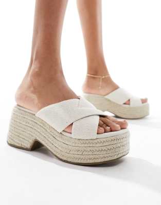 Shoes by ASOS DESIGN Wide Fit Step into summer Slip-on style Cross strap design Open toe Chunky sole Mid block heel Wide fit