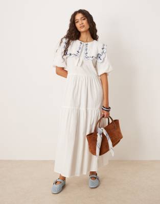 Dresses by Neon Rose Tiered design Oversized collar Puff sleeves Embroidered detailing Zip-back fastening Regular fit