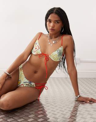 Swimwear & Beachwear by Reclaimed Vintage All-over print Non-padded cups Underwire support Tie fastening