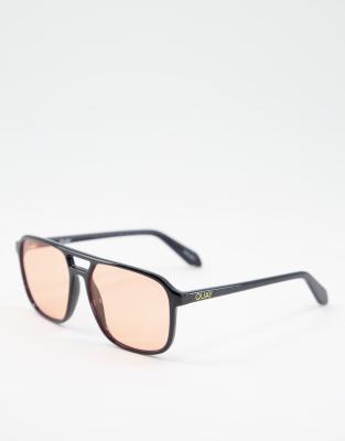 Sunglasses by Quay The scroll is over Square frames Moulded nose pads Coloured lenses Slim arms Branded sunglasses case included