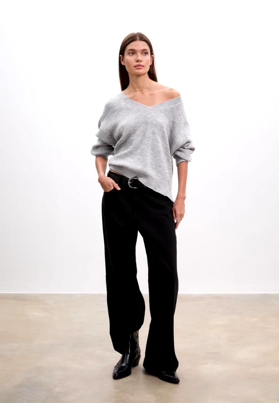Φαρδύ πουλόβερ με λαιμόκοψη V και μακρύ μανίκι. Τελείωμα rib στο κάτω μέρος. Διατίθεται σε διάφορα χρώματα.