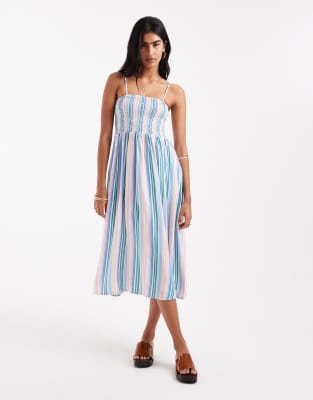 Επισκέψου το κατάστημα Asos για να δεις περισσότερες λεπτομέρειες και φωτογραφίες για το Vero Moda Easy shirred cami ankle dress in candy stripe-White. Για αγορά του Vero Moda Easy shirred cami ankle dress in candy stripe-White πρέπει να επισκεφτείς το κατάστημα Asos.
